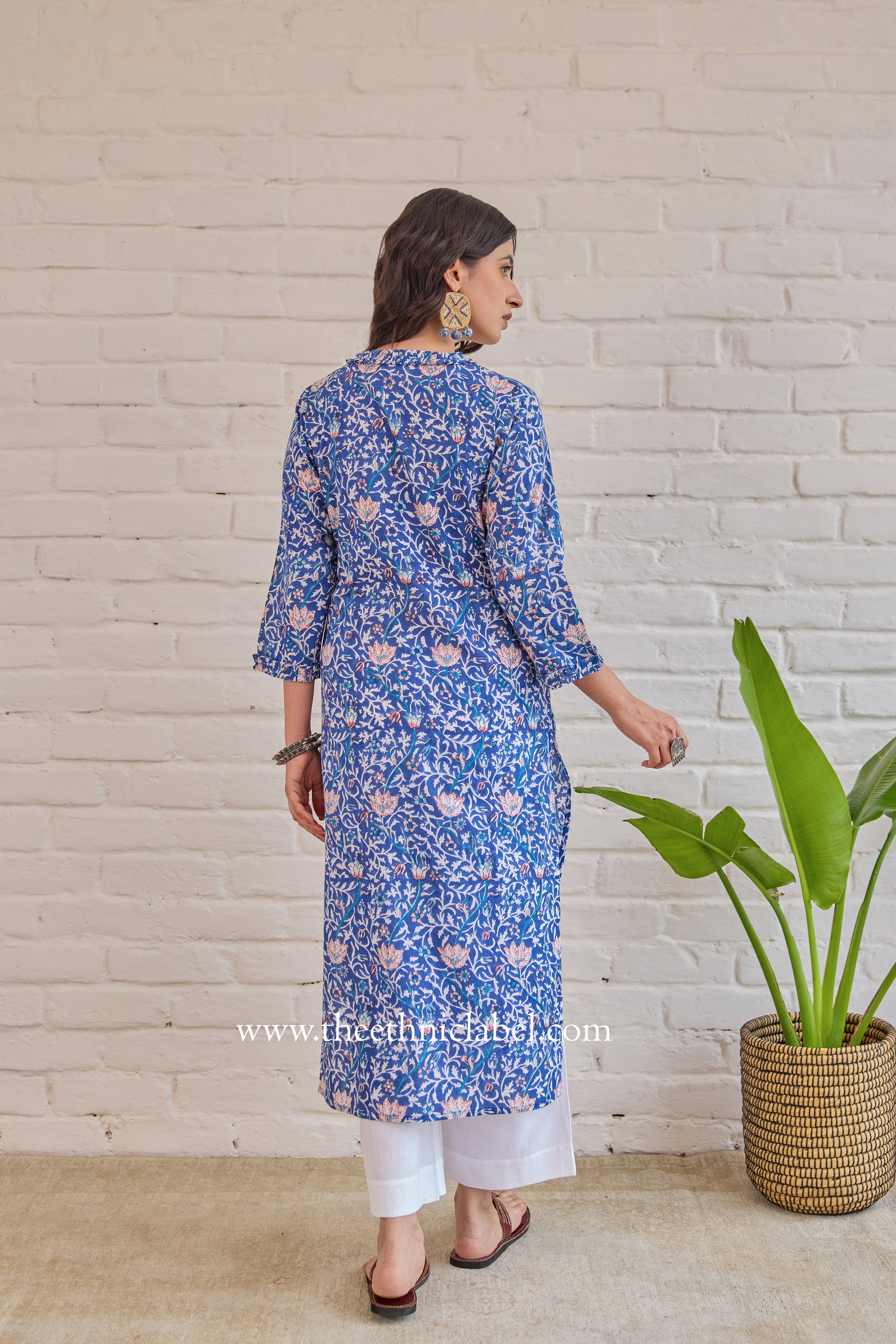 Minimal, classic and chic, this kurta is designed for all the days you want to keep things special and subtle. Inspired by the art of Hand Block Printing, this kurta is a piece of art. The kurta comes with a unique print that gives an elevated touch to its royal colour and pure cotton fabric.