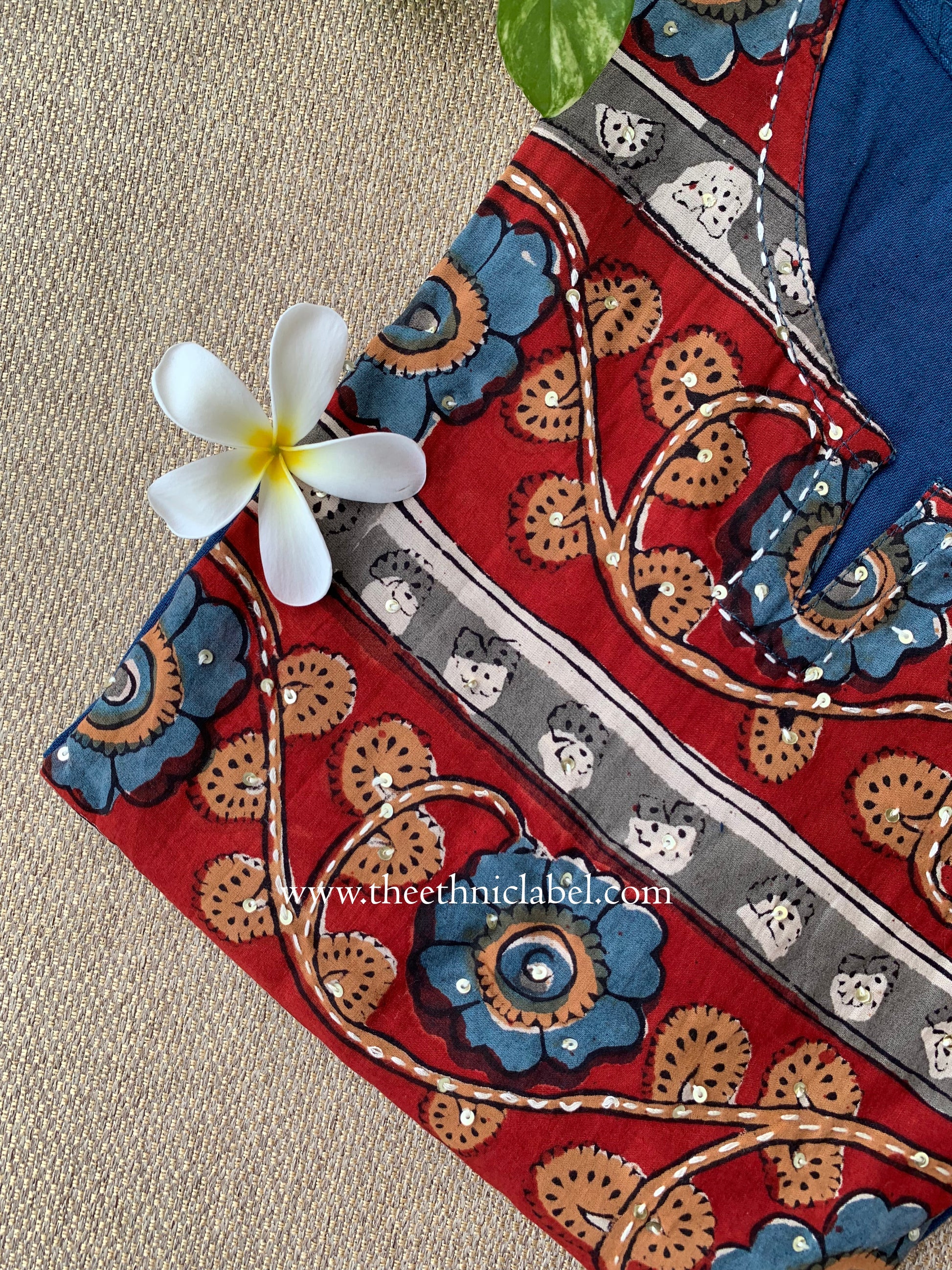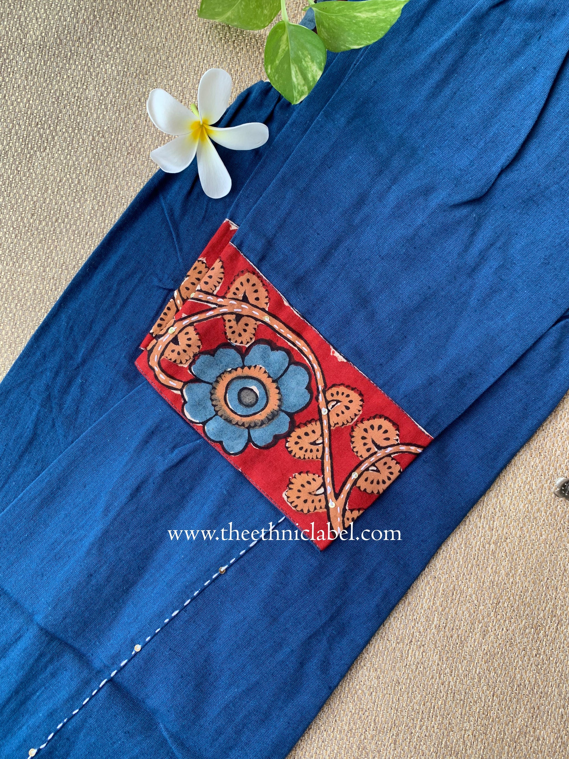 Step into comfort and style with our premium cotton kurta, thoughtfully designed for your everyday wardrobe. Crafted from the finest quality cotton, this kurta is soft, breathable, and perfect for all-day wear.The kurta has a unique kantha work with an ajrakh patchwork in the yolk.