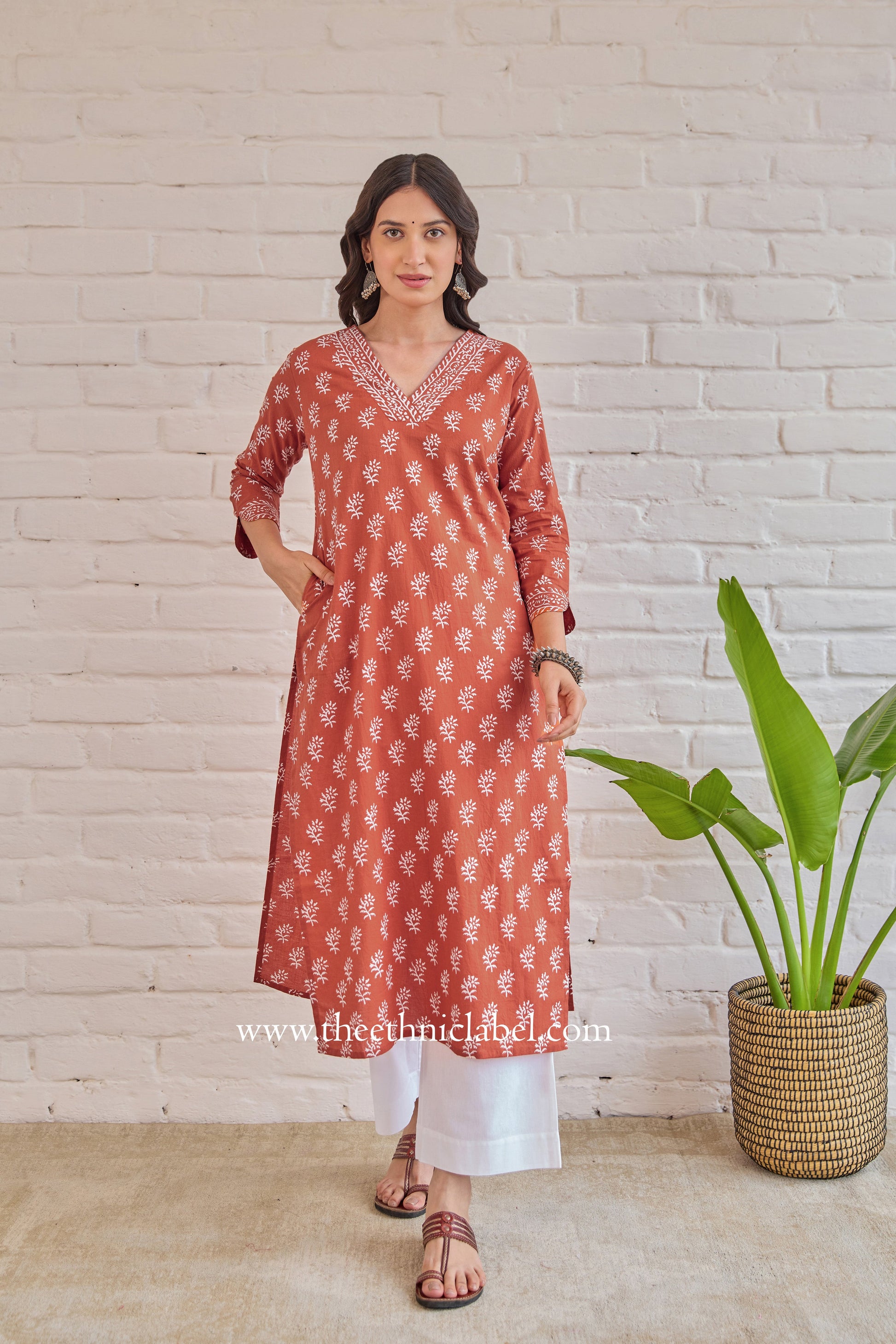 Minimal, classic and chic, this kurta is designed for all the days you want to keep things special and subtle. Inspired by the art of Hand Block Printing, this kurta is a piece of art. The kurta comes with a unique print and has a beautiful bordered "V" neckline, that gives an elevated touch to its royal colour and pure cotton fabric.The sleeves also embrace the bordered cut pattern.