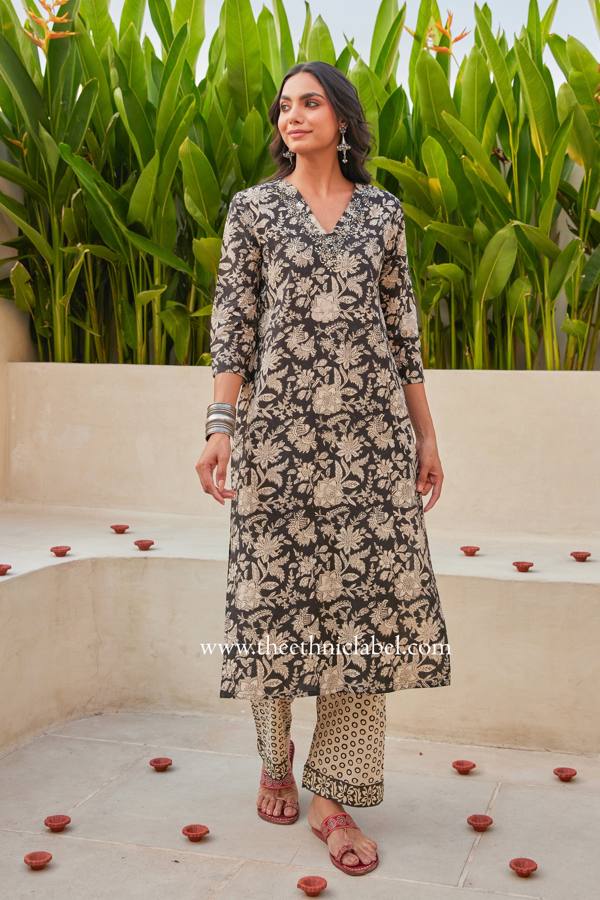 Minimal, classic and chic, this kurta is designed for all the days you want to keep things special and subtle. Inspired by the art of Hand Block Printing, this kurta is a piece of art. The kurta comes with a unique print that gives an elevated touch to its royal colour and pure cotton fabric.