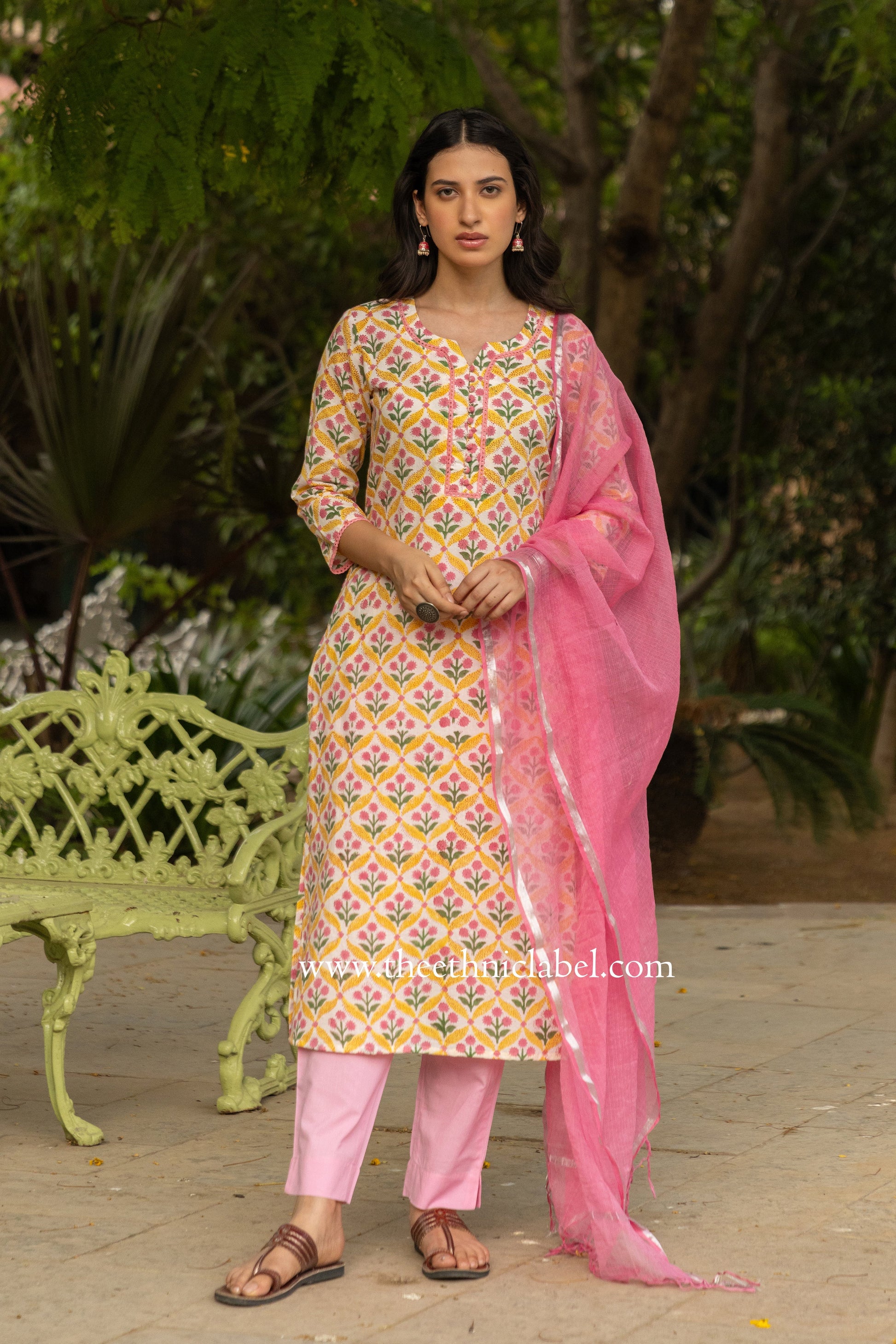 "Mayra" Hand Block Printed Laced Cotton Kurta