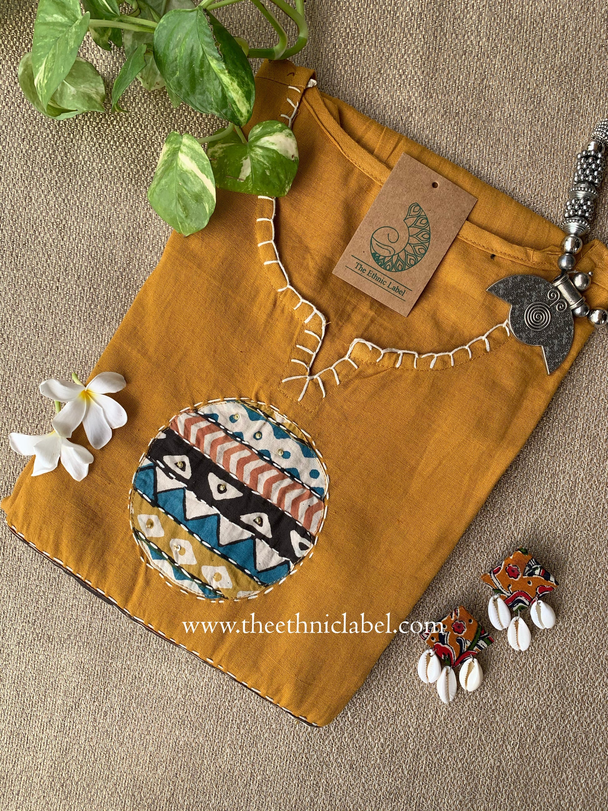 Minimal, classic and chic, this kurta is designed for all the days you want to keep things special and subtle. Inspired by the art of Hand Block Printing, this kurta is a piece of art. The kurta comes with a unique print and has a beautiful patchwork in the yolk area, that gives an elevated touch to its royal colour and pure cotton fabric.The kurta has a unique "A" line pattern.