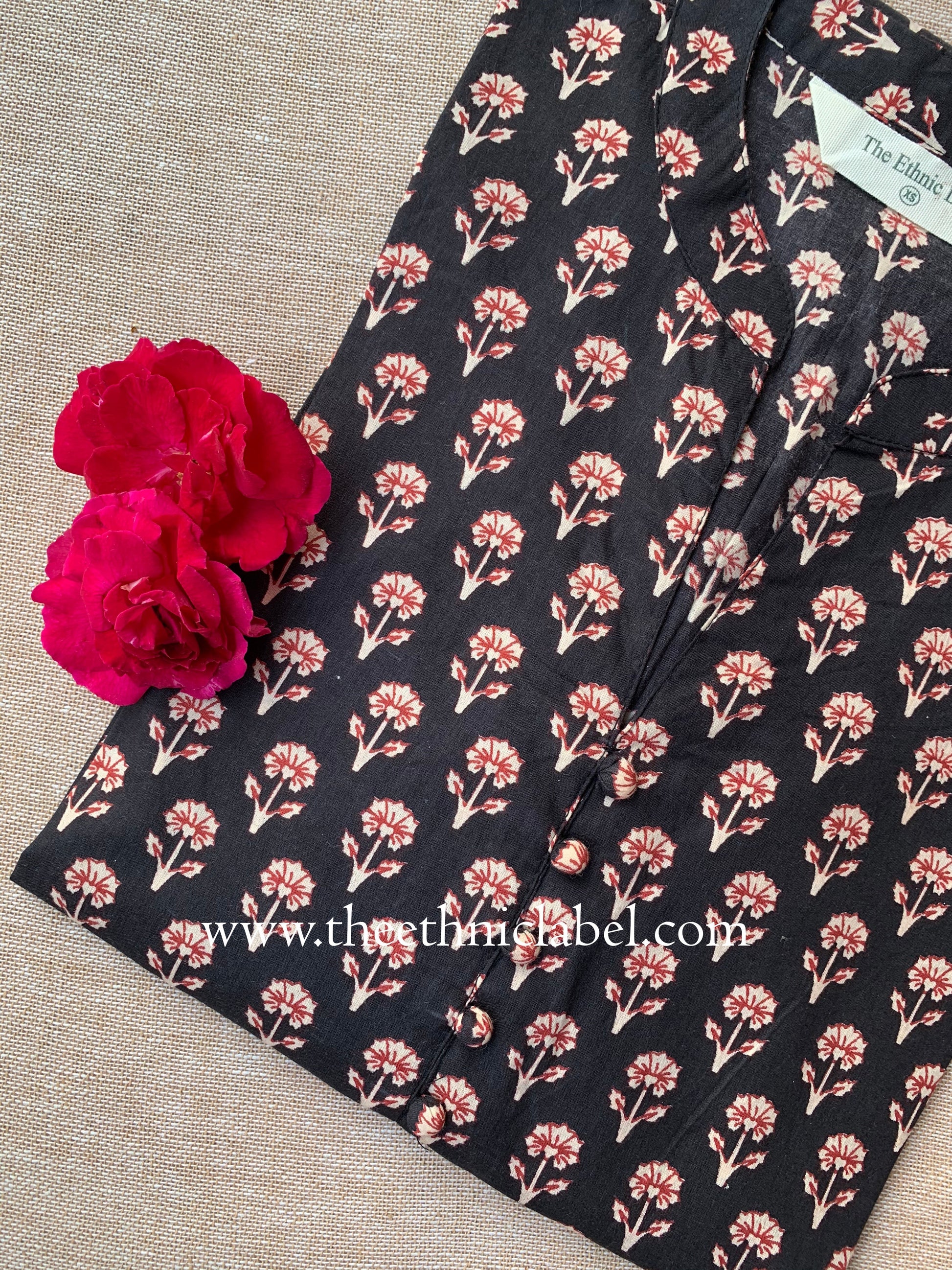 Minimal, classic and chic, this kurta is designed for all the days you want to keep things special and subtle. Inspired by the art of Hand Block Printing, this kurta is a piece of art. The kurta comes with a unique print that gives an elevated touch to its royal colour and pure cotton fabric.