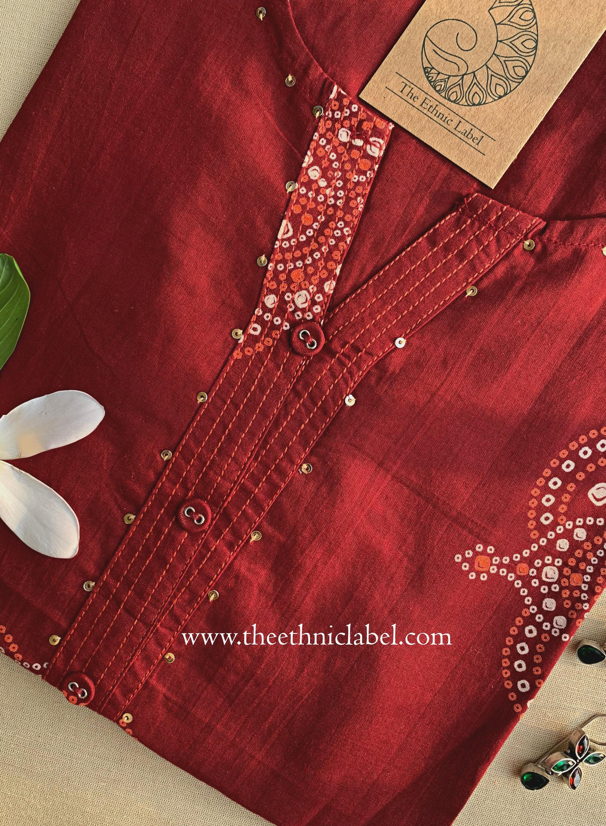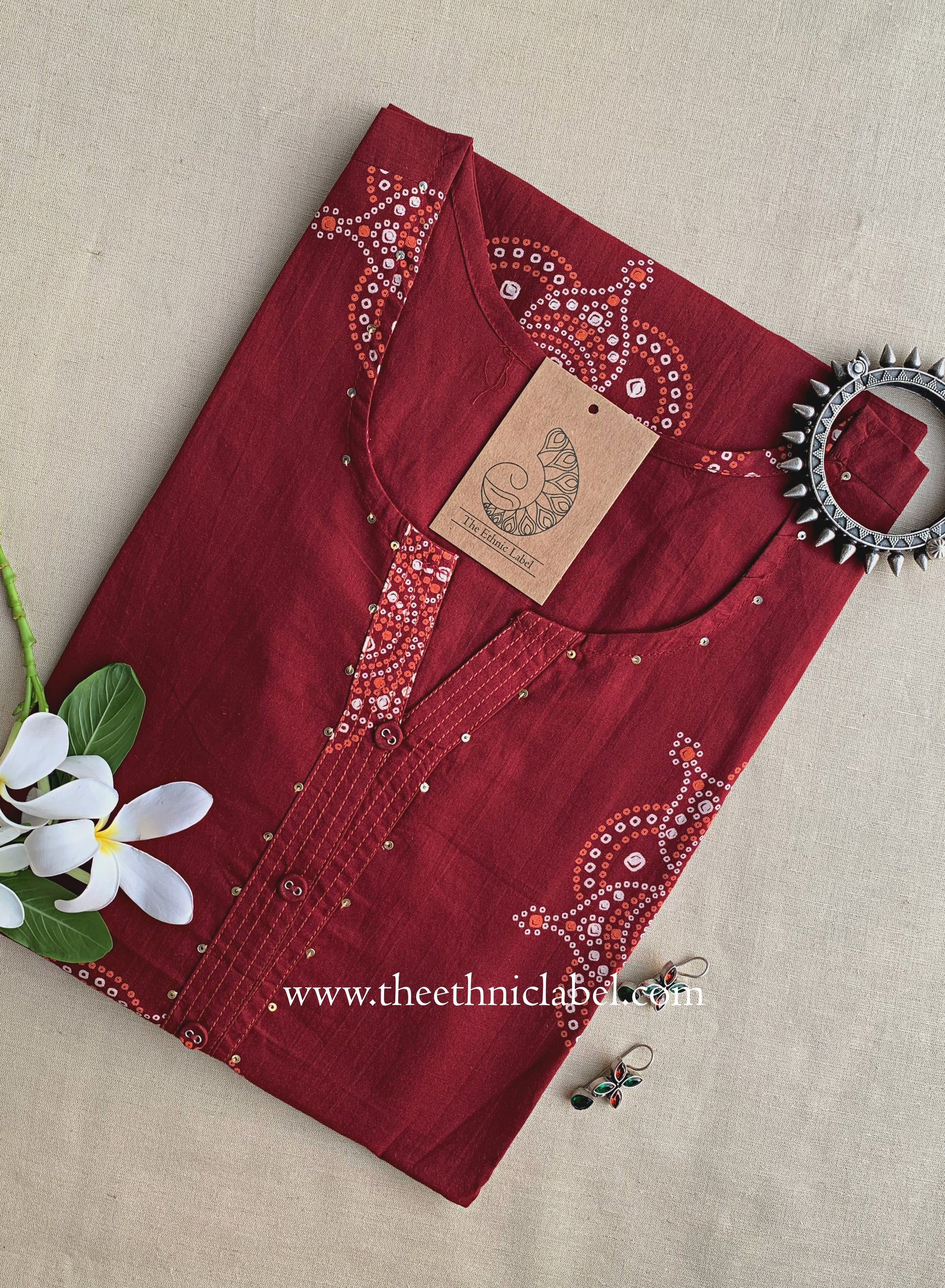 "Sutika" Bandhani Buttoned Cotton Kurta- S,M