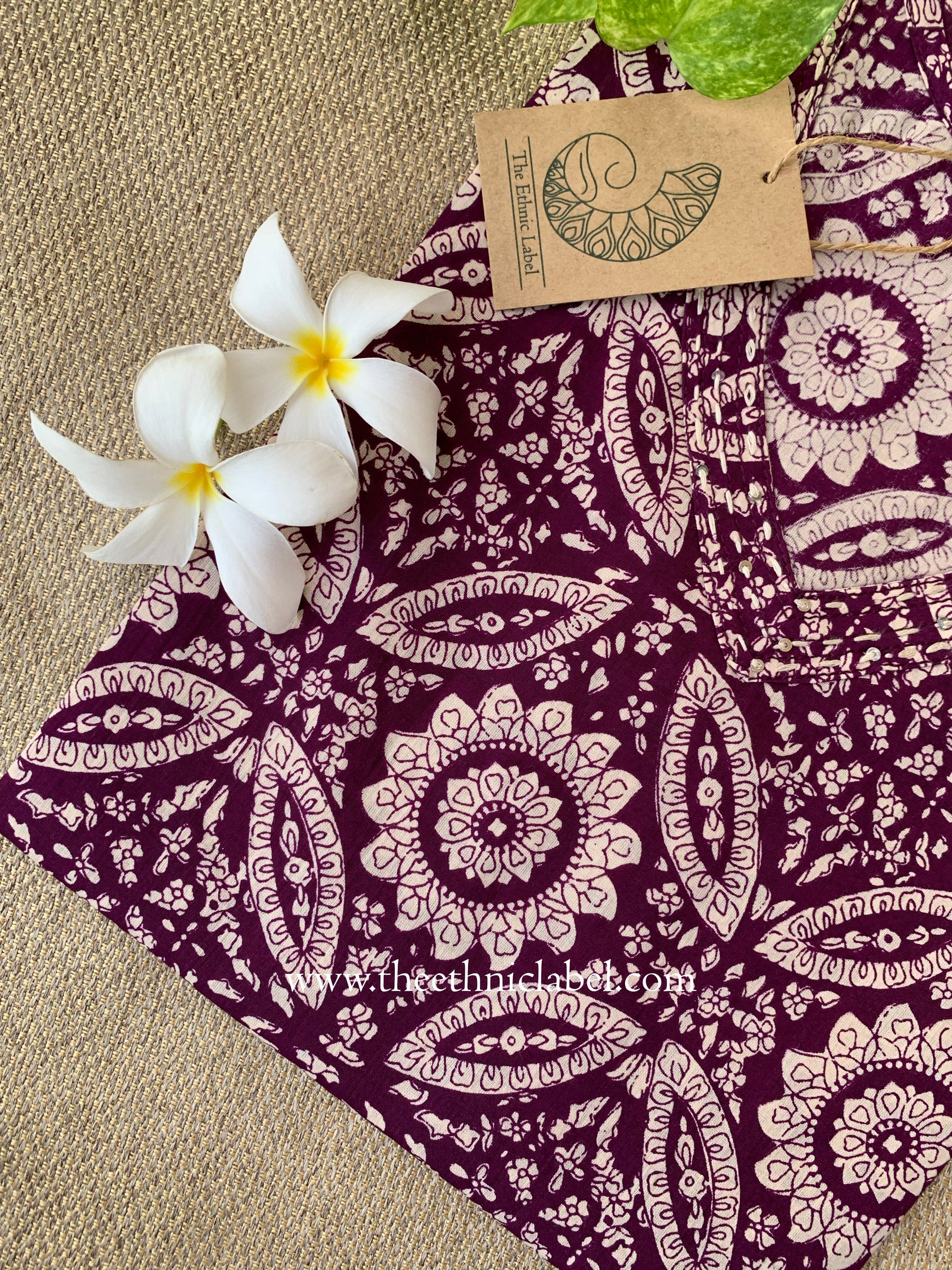 "Zahra" Wine Cotton kurta - L
